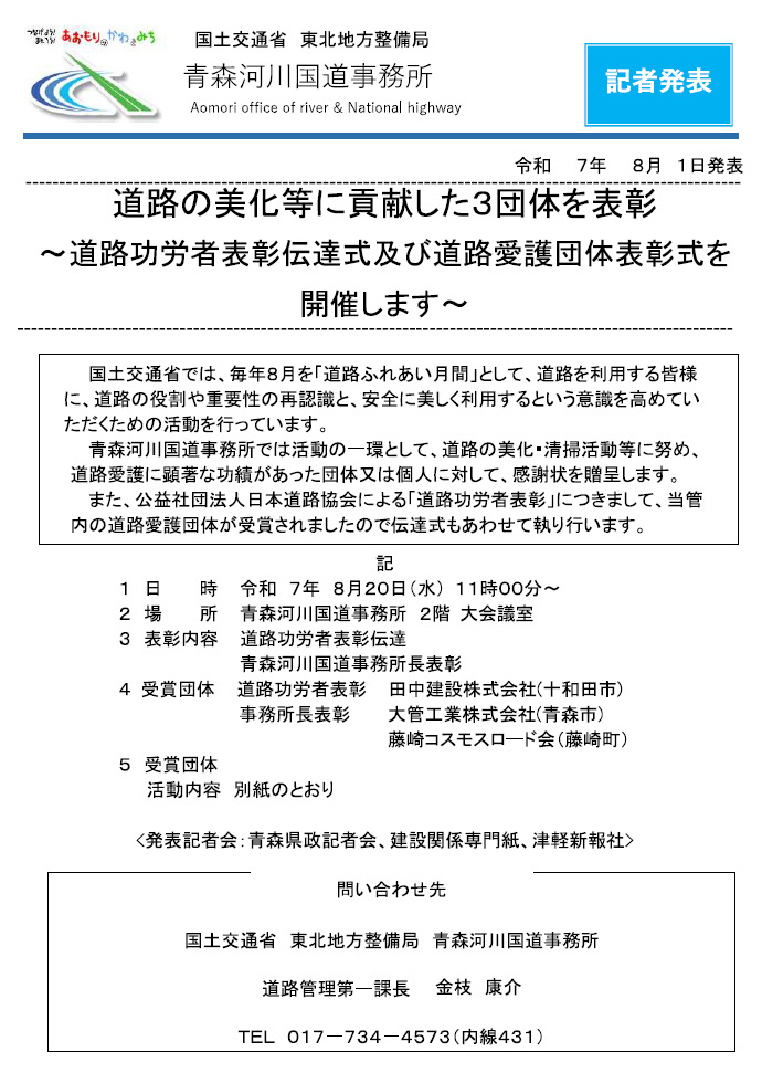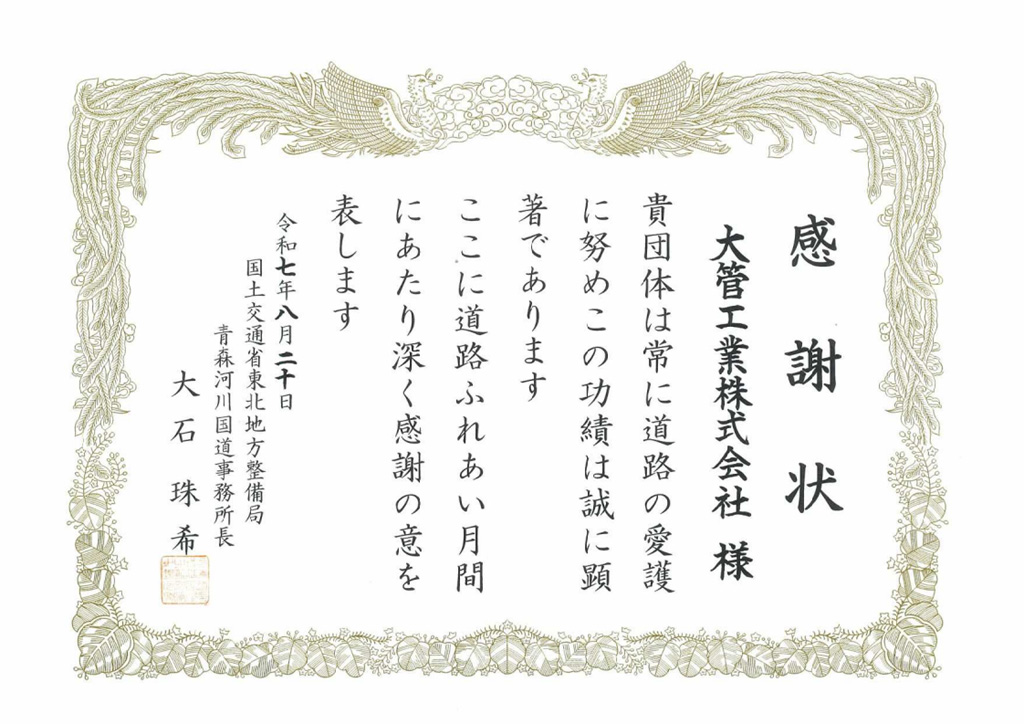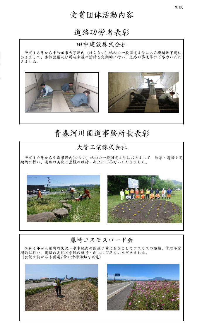 道路愛護団体青森河川国道事務所長表彰を受賞しました